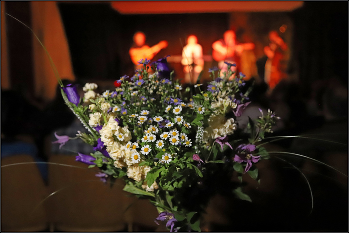 Zato jsme poznali báječnou partu divadelních ochotníků, sdružených do divadelního spolku Mošna, kteří zorganizovali náš koncert v místním divadelním sále s atmosférou, která se jen tak nevidí. Je škoda, že jsme se s nimi potkali až takhle na sklonku života. Odměnou nám bylo, kromě potlesku vestoje, i nádherné perníkové srdce a mechový dort, obé s číselným vyjádřením našeho požehnaného kapelního věku.