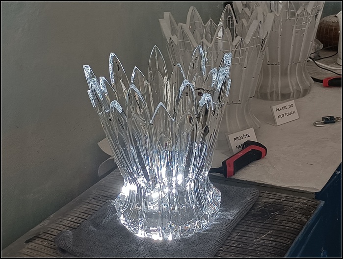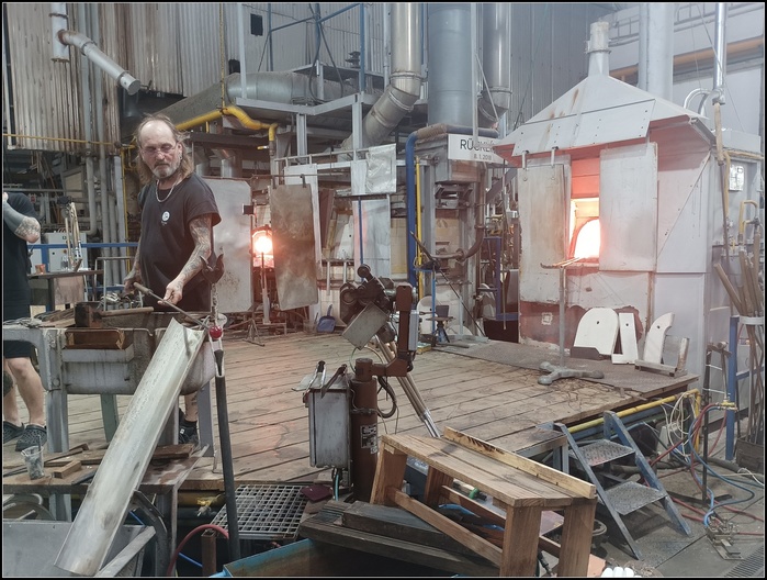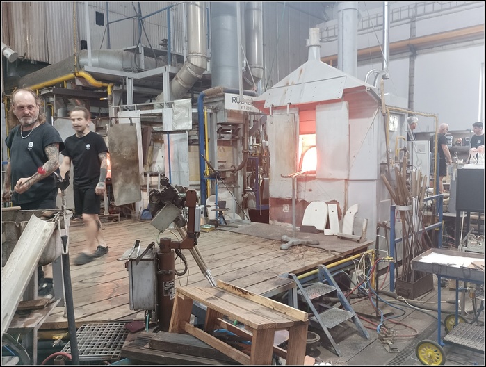 Ze zámku jsme pokračovali dál v naplánované trase, ale i_vinou prohlídky jsme nabrali další zpoždění. Ve sklárně Rückl už nás netrpělivě očekávala naše průvodkyně, ale ani tady se naše zpoždění neukázalo být jako velký problém. Průvodkyně nás na začátku zasvětila do historie sklárny a_poté jsme ji následovali do samotného provozu sklárny, tedy přímo do sklářské huti. Okolo sklářských pecí jsme viděli pracovat mistra skláře s jedním pomocníkem, kteří právě vyráběli skleněné dýně pro pravděpodobně na nadcházející Halloween. Poté nám průvodkyně vysvětlila jednotlivé kroky ve výrobě skla a_skleněných výrobků a přešli jsme dál do „pukárny“. To je místnost, ve které se z již vychladlých skleněných výrobků odděluje přebytečné sklo a probíhá první vizuální kontrola. Další místností byla brusírna. I tady jsme viděli mistry brusiče při práci a myslím, že se nenašel nikdo kdo by tyto pány neobdivoval.