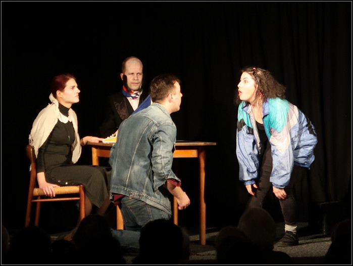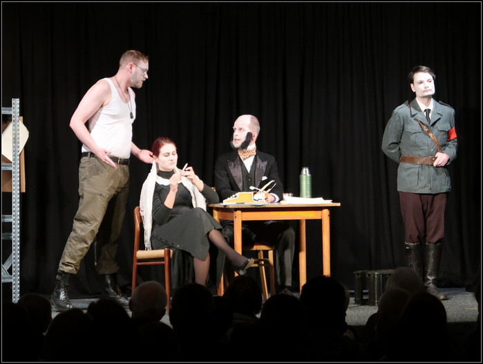 Více jak z poloviny zaplněný sál se po krátkém úvodu do doby a tématu od Jiřího Voláka (autora a režiséra v jedné osobě) ponořil do příběhu jedné schůze imaginárního „bytového“ družstva. Družstva, které ovšem nespravuje běžný bytový dům, ale společné hroby ďáblického hřbitova. Externí předseda družstva František Palacký se zapisovatelkou Boženou Němcovou pak řeší permanentní spory mezi družstevníky K.H. Frankem a Janem Kubišem. Celá situace se ještě více zkomplikuje, když schůzi navštíví jistý student Martin Šmíd. Je totiž 17. listopadu 1989 pozdě večer a Martin Šmíd je v danou chvíli schredingerovsky živý i mrtvý současně.