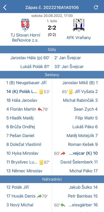 Úvod > Život v obci > Zpravodajství (co bylo) > TJ Slovan Horní Beřkovice 2:2 AFK Vraňany